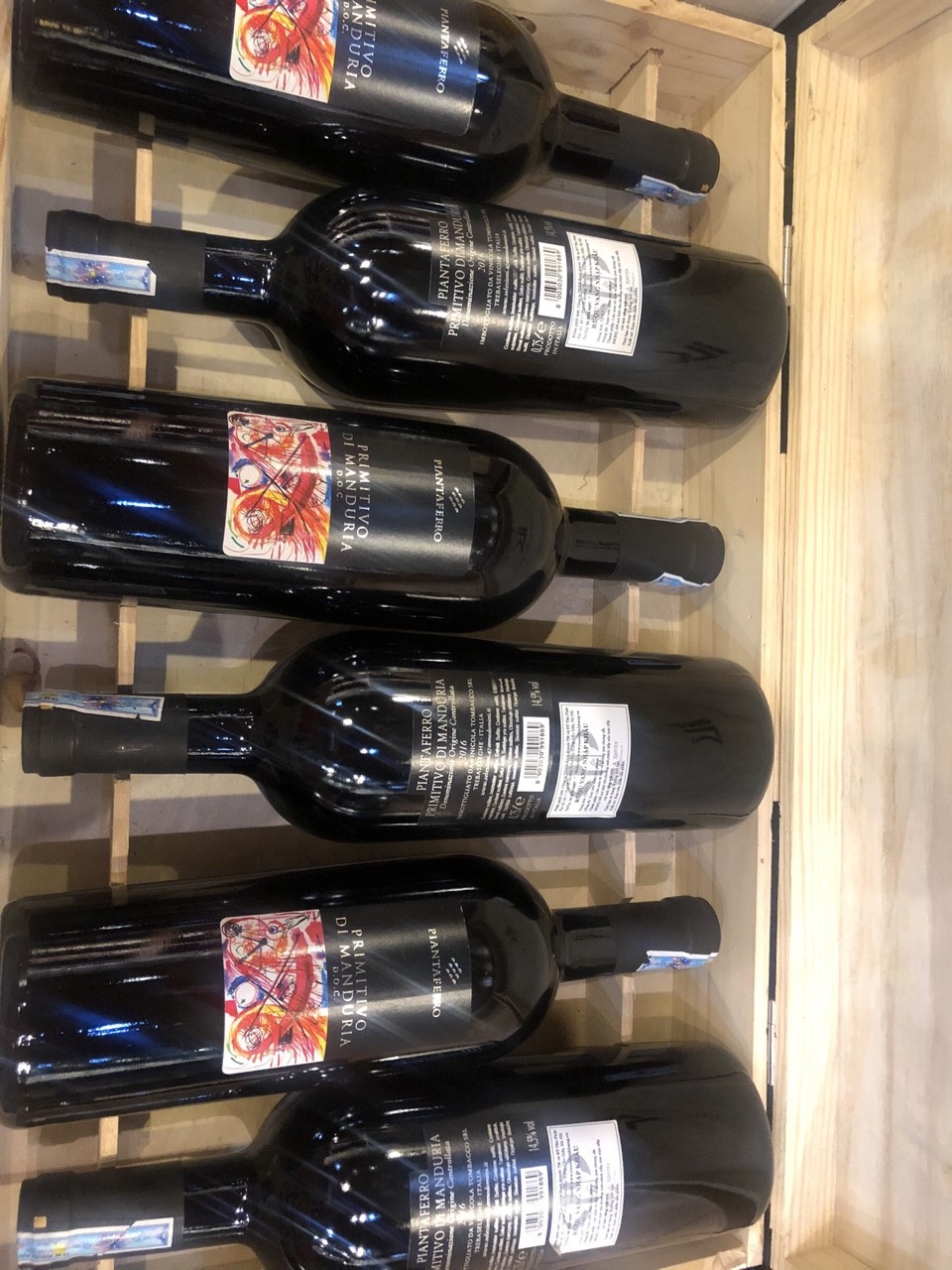 ◦ Tên rượu: PIANTAFERRO PRIMITIVO DI MANDURIA DOC(Vang Hoạ Tiết).Một chai vang mang đậm phong cách ý,mềm mại và mạnh mẽ như những chàng trai cô gái của nước ITalia xinh đẹp.