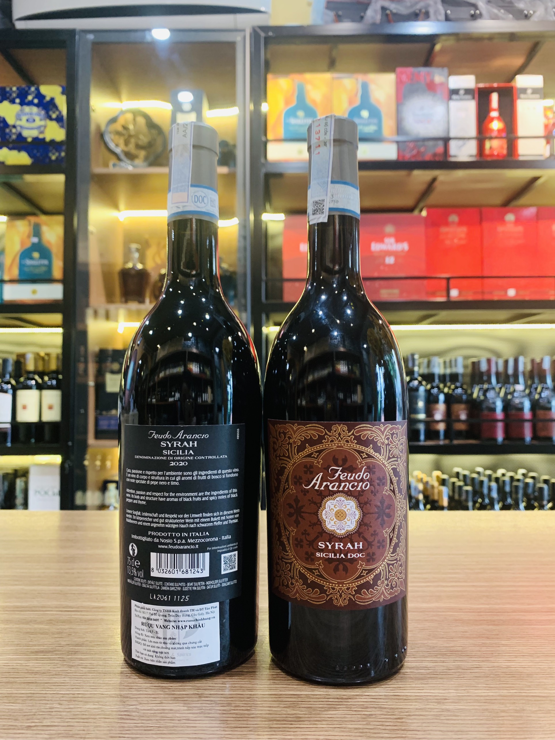 Rượu vang Ý Feudo Arancio Syrah được làm từ 100% những trái nho Syrah được trồng tại Sambuca di Sicilia, tỉnh Agrigento, và cả Acate thuộc tỉnh Ragusa. Nho được thu hoạch vào tuần đầu tiên của tháng 9 khi đã đạt đến độ chín lý tưởng. Quá trình khử gốc và lên men cồn với vỏ diễn ra ở 26 ° C, trong vòng 10 ngày. Sự trưởng thành malolactic xảy ra với loại nấm men đã được chọn lọc sẵn. Sau đó Feudo Arancio Syrah được ủ trong các thùng gỗ sồi của Pháp trong 10 tháng.